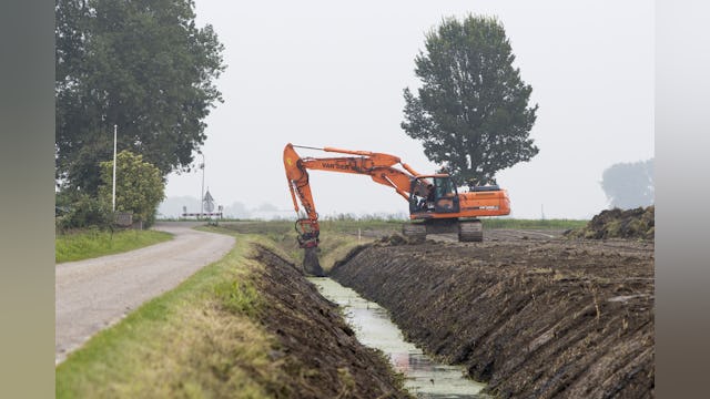Sinds tweeënhalf jaar werkt Visser bij Van der Wal Grondverzet in het Friese Noardburgum. 'Ik zit nu op een Doosan 255. Het is een gebruikte kraan, die is gekocht in Duitsland. Gps, een verstelbare giek; alles zit er op en aan. Voor mij is dit helemaal goed. Deze machine werkt echt heel fijn. Supergoed.'