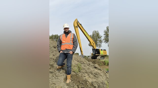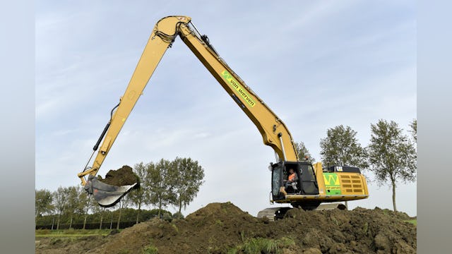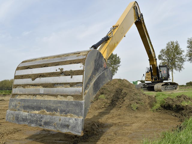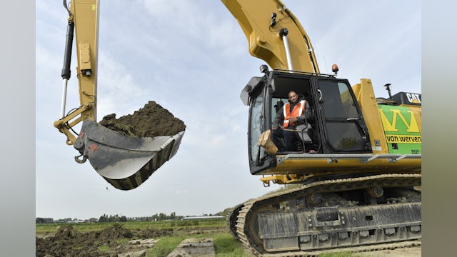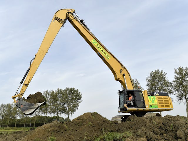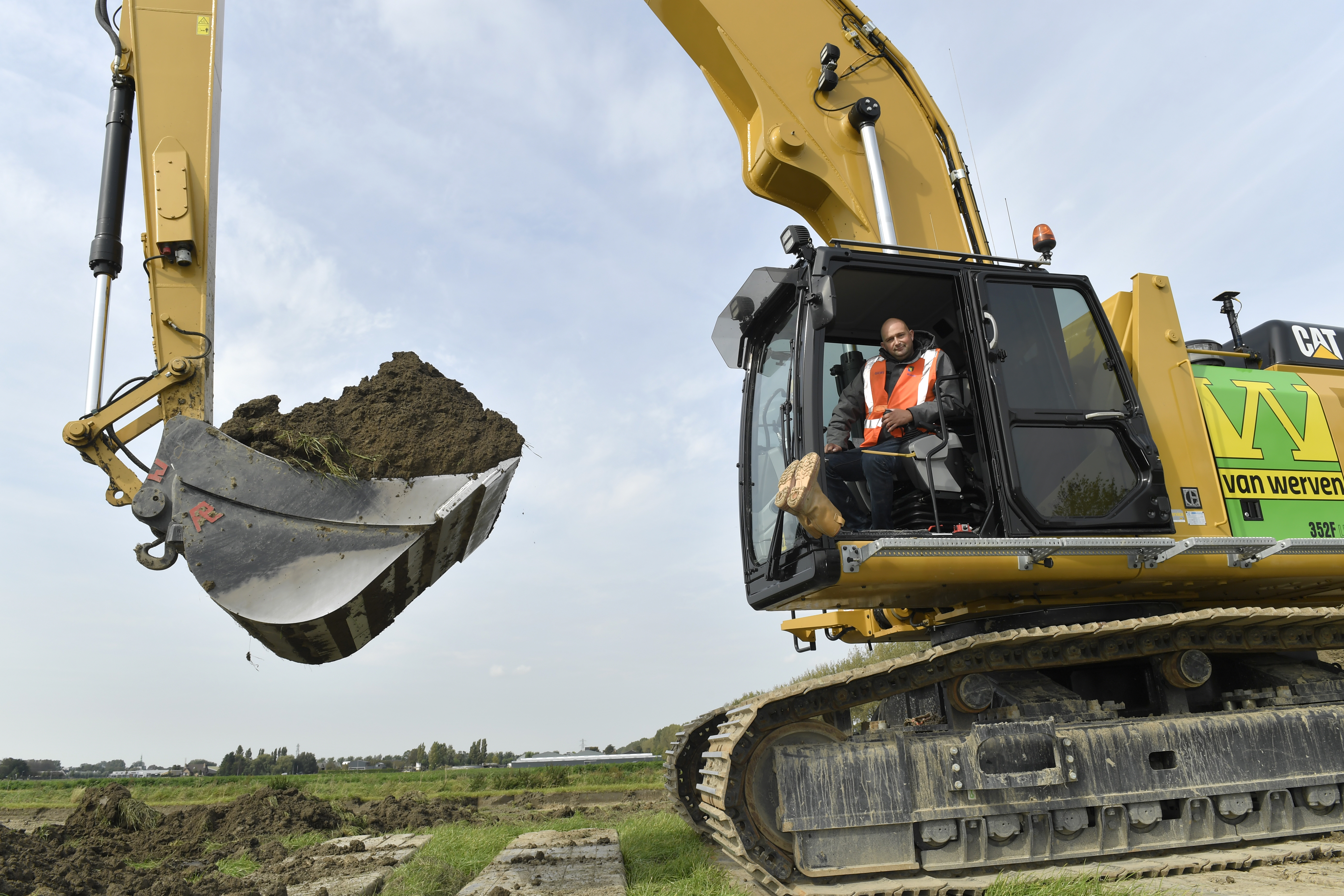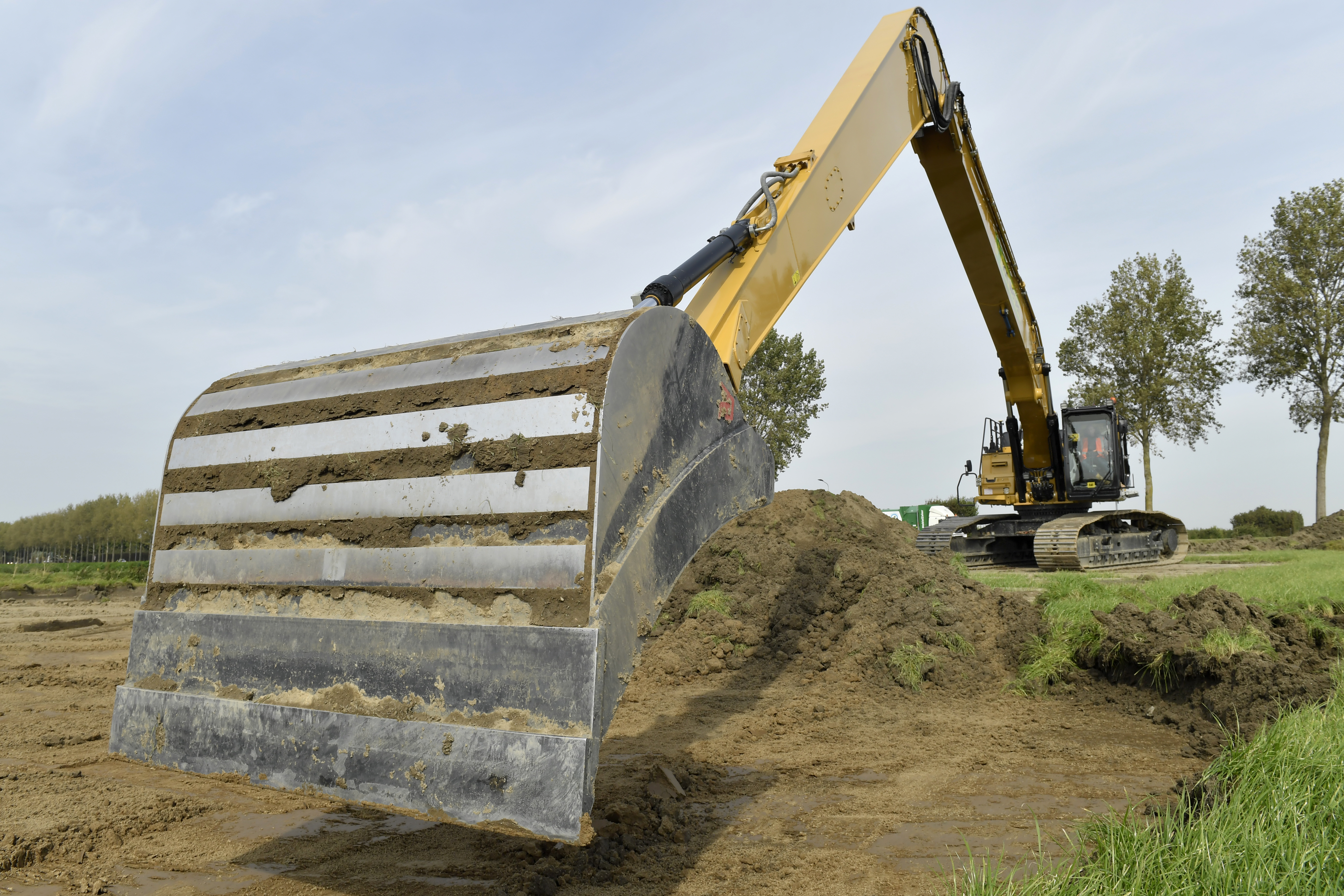 Over de vraag wat de mooiste machine is waarop hij ooit heeft gewerkt, hoeft Pieter niet lang na te denken. 'Dan kan ik wel zeggen: de machine waar ik nu op zit, de Cat 352F LRE, maar dat is niet zo. De allermooiste is de Cat 385. Caterpillar is voor mij hét merk. Ik heb ook jarenlang op Volvo's gezeten, maar Caterpillar is het voor mij. En dan vooral de Cat 385. Prachtig.'