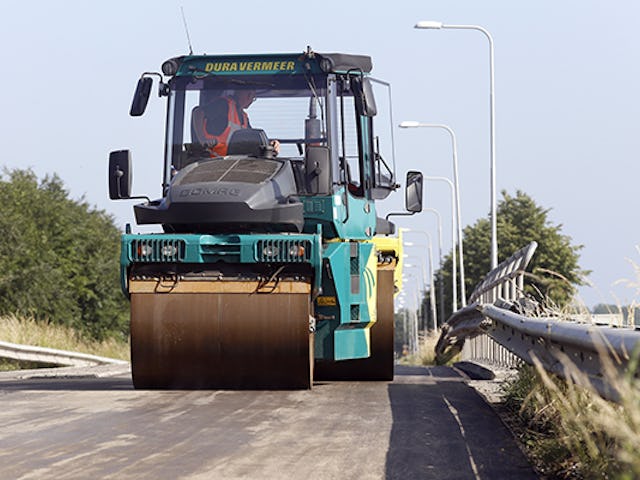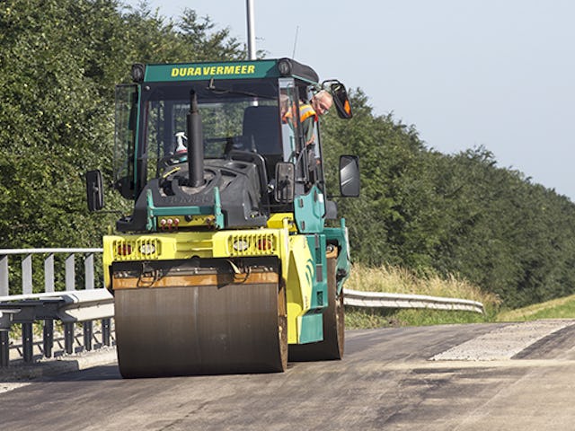 ‘Winterdag bezoek ik de bouwplaatsen van Dura Vermeer om keuringen uit te voeren. Ook mooi werk, maar ik ben toch altijd weer blij als ik weer met mijn Bomag BW154 tandemwals op pad kan. Ik heb me wel eens afgevraagd of ik niet wat anders moest gaan doen. Maar nee, mijn toekomst ligt in het asfalt.’