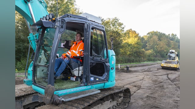 Elke ochtend gaat Steven met plezier aan het werk. ‘Het is heerlijk werken op deze Kobelco. Ik vind het ook heel fijn om een vaste machine te hebben. Het klein onderhoud doe ik zelf, het groot onderhoud in samenwerking met onze monteur.’