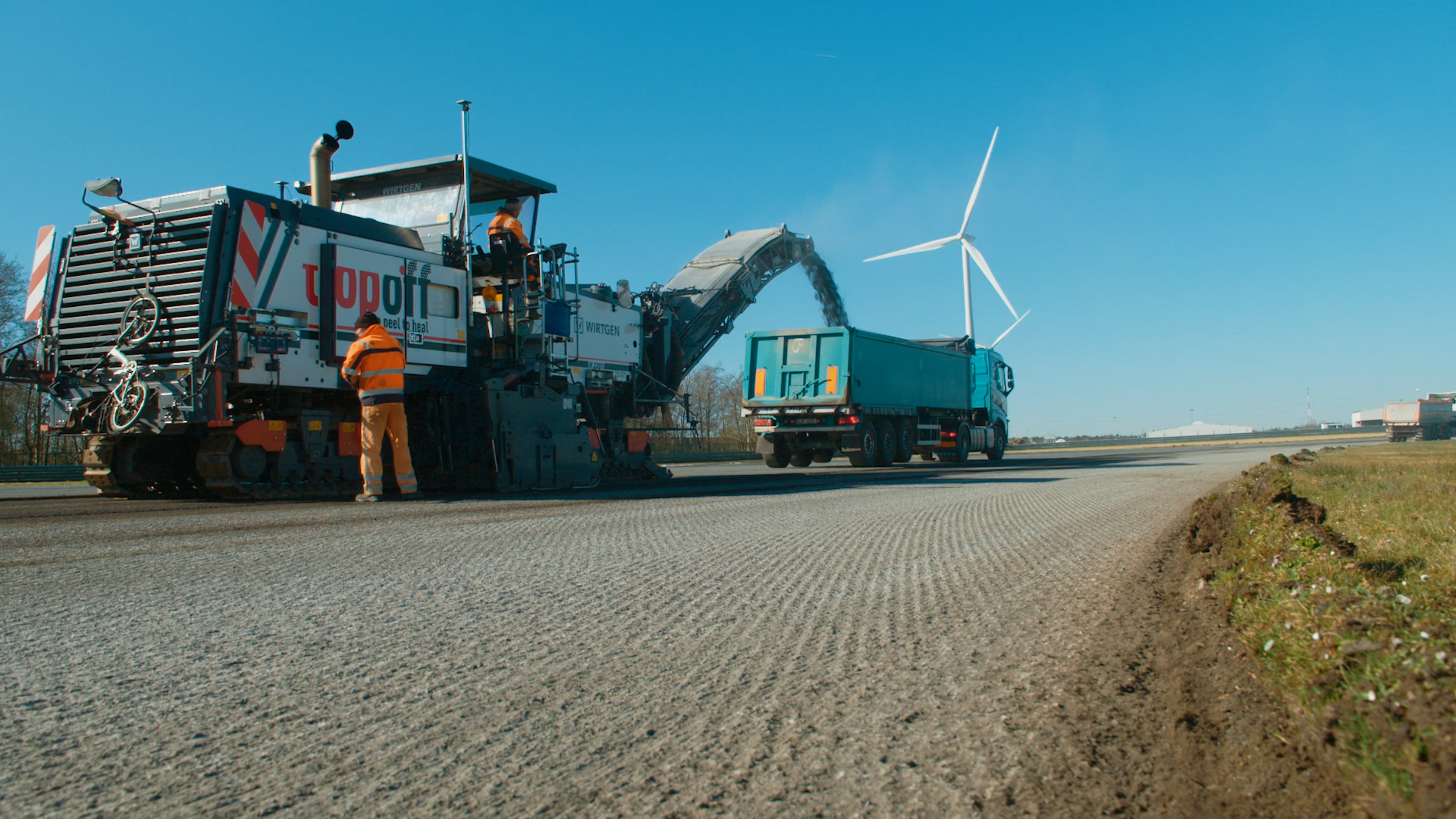 APK leidde het project en nam enkele partners in de arm. Als eerste was het de beurt aan Top-Off om de bestaande asfaltlaag uit te frezen. Top-Off en Topcon zijn geen onbekenden van elkaar; hun partnership verloopt al meer dan tien jaar succesvol. De keuze om ook dit project 3D uit te frezen was dan ook snel gemaakt. Voordat het team daadwerkelijk begon, werd de bestaande situatie opgemeten, met een IP-S3, een ‘mobile mapper’ van Topcon.