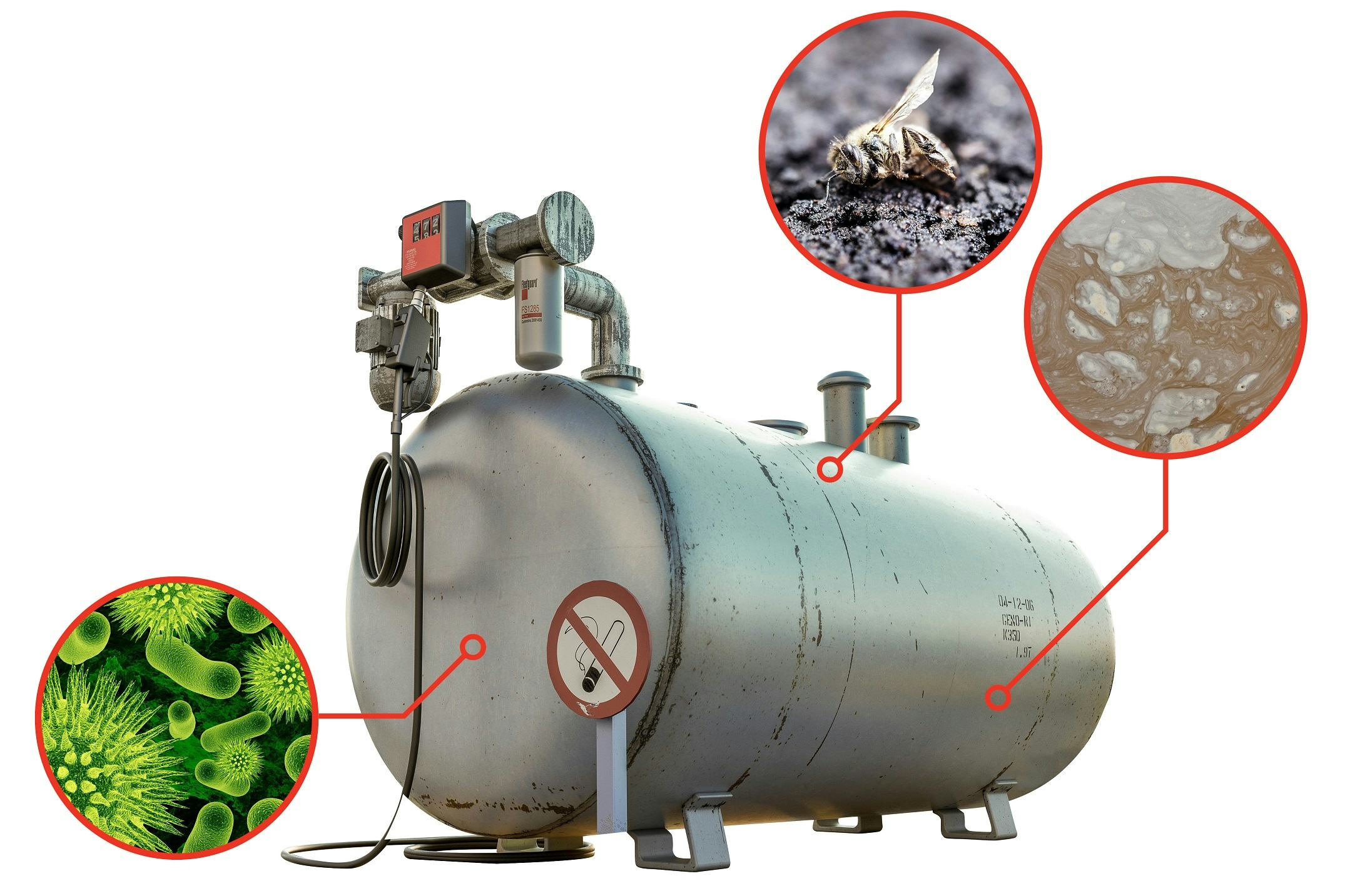 Hiertoe behoort elk overslagpunt, waar stof, vuil en andere organische stoffen in de tanks en slangen terecht kunnen komen. Door verontreinigingen kunnen kritische brandstofsystemen en motoronderdelen voortijdig slijten. En condenswater kan zich in tanks ophopen, waardoor er corrosie en microbiële groei kunnen optreden.