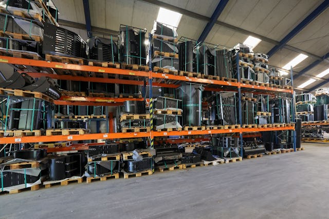 Qua aantallen heeft Xspare een voorkeur voor het leveren van volle containers en trailers met 180 tot 200 bakken. Voor dealers die jaarlijks z’n 40 machines afzetten is dit volgens Van Hoek al heel interessant. “Bakken voor dat soort aantallen machines kunnen wij tegen bijzonder aantrekkelijke prijzen leveren. Eventueel is de minimale hoeveelheid bakken op te delen over bijvoorbeeld twee dealers maar aan de totaalaantallen tornen we niet.” Voor wie toch kleinere aantallen wil, liggen er steeds 1.500 tot 2.000 bakken op voorraad die per stuk minder voordelig zijn dat de grotere aantallen.