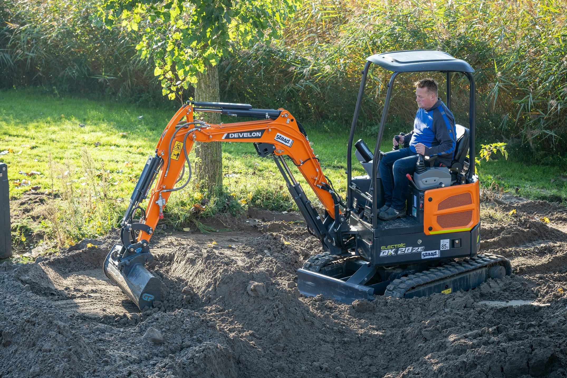 De importeurs van Develon Nederland zijn blij met de nieuwe Develon DX20ZE. In het segment minigravers is er veel vraag naar elektrische machines. Dat was ook voor het Koreaanse Develon reden om juist deze machine van de klasse 2 ton als eerste af-fabriek te elektrificeren. De minigravers worden veelal binnenstedelijk gebruikt en daar gelden steeds vaker emissienormen, maar ook arbotechnische eisen. Grondwerkers staan nu niet meer in de dieseluitstoot van de graafmachine.