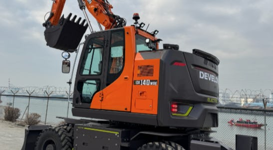 Develon heeft de machine volledig zelf in Zuid-Korea ontwikkeld en gebouwd als een elektrische machine, er is dus geen link met een ombouwer. De machine komt niet helemaal uit de lucht vallen, achter de schermen is de fabrikant er al even mee bezig. Develon is van plan nu door te pakken met het conceptmodel dat op de vorige Bauma al stilletjes werd getoond in een hoekje van de stand.