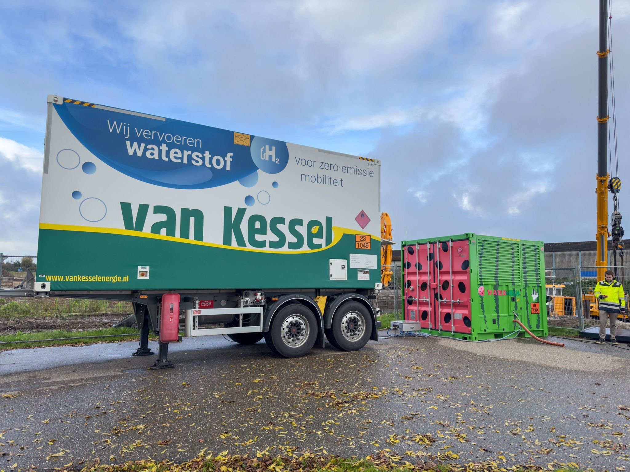 Waar dan ook machines tóch van waterstof voorzien, Van Kessel realiseerde het met hun trailer. Op de TKD-stand is de waterstoftrailer te zien in combinatie met een aggregaat van Watermeln. Dit systeem is het afgelopen jaar ingezet bij diverse emissieloze projecten. Het aggregaat levert een vermogen van 200 kW en is gekoppeld aan een trailer met 350 kg waterstof aan boord. Dit staat gelijk aan ongeveer 5.000 kWh aan schone energie: voldoende om elektrische graafmachines en snelladers meerdere dagen operationeel te houden.