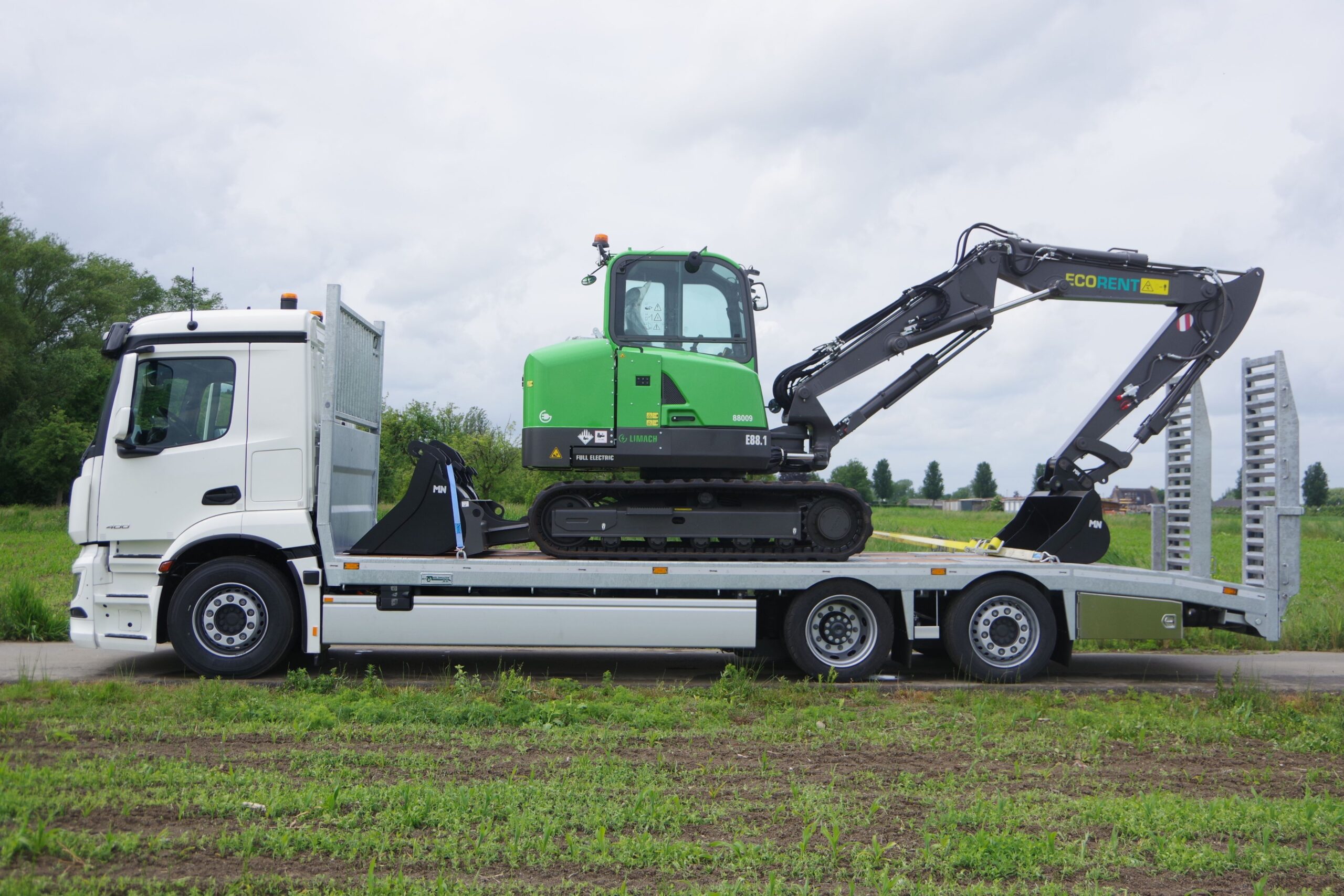 Een elektrische oprijwagen voor compacte graafmachines. Veldhuizen Trucks ontwikkelde de Mercedes-Benz eActros 400 en neemt 'm mee naar de TKD. De oprijwagen heeft alle eigenschappen van de reguliere oprijwagens van Veldhuizen Trucks. De totale lengte van het voertuig blijft precies binnen de 10 meter, waardoor ook bijvoorbeeld de Amsterdamse binnenstad bereikbaar is. De wagen is voorzien van een 448 kWh accupakket waarmee een actieradius van ruim 400 kilometer mogelijk is.