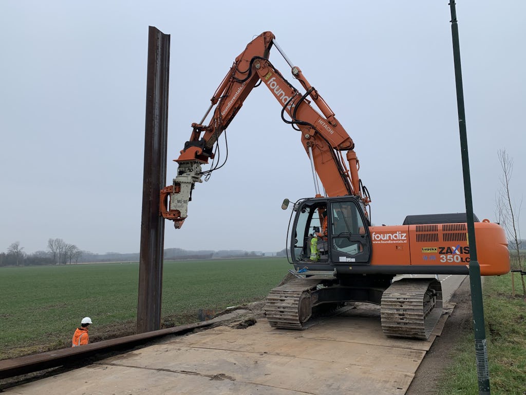 ‘Daarnaast biedt het zijwaarts klemmen een groot voordeel bij werken in een beperkte ruimte’, legt Van der Schaaf uit. ‘Denk bijvoorbeeld aan het plaatsen van damwanden onder een brug. Doordat je de palen zijwaarts grijpt, bespaar je de hoogte van het trilblok dat anders bovenop de paal zou worden gezet. Geïnteresseerden kunnen de proef op de som nemen met een verhuurmachine. Zo hebben onze verhuurmachines al diverse projecten uitgevoerd voor brugrenovaties, kadewerken, spoedreparaties en voor de uitvoering van testpalen.’