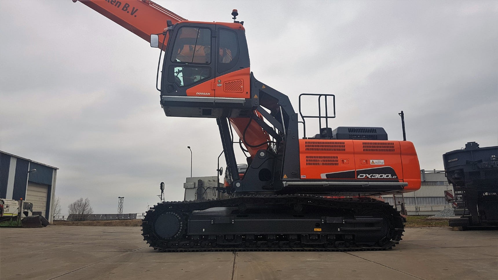 Anema Arum heeft de laatste maanden diverse nieuwe Doosans afgeleverd. Hieronder was een DX300LC-5 SLR met een verstelbare cabine. Deze machine ging naar Pikkert Grondwerken in Groningen.