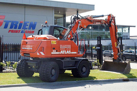 <a target="_blank" href="http://www.hansvandriel.nl">Hans van Driel</a><p><strong> uit Tiel heeft een Atlas 160W mobiele graafmachine geleverd aan de firma Wagemakers uit Oudenbosch. De 16,7 ton wegende machine is onder andere voorzien van een Atlas snelwisselsysteem, proportionele bediening in de linkerjoystick, banden van Agri TG2000, extra functies en stalen spatborden op voor- en achteras. Tevens is de Atlas 160W afgeleverd met een slootlepel van 2.000 mm.</strong></p>