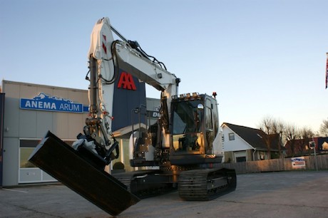 Jelle Bijlsma in Giekerk reed onlangs bij Anema Arum zijn nieuwe Doosan DX380LC-5 SLR op de dieplader. De dikke 44-tonner is van rups tot giek naar Bijlsma's wensen opgebouwd door Anema. "Een mooi stukje vakwerk, waar we bij Anema Arum erg trots op zijn."