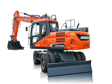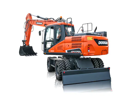 Tien procent meer vermogen, vijf procent meer koppel en tractie, een hogere hydraulische capaciteit en meer liftvermogen: de nieuwe Doosan DX170W-5 mobiele graafmachine is een krachtpatser. Tegelijkertijd wordt de machinist verwend met meer comfort en is het verbruik verminderd.