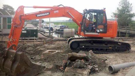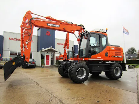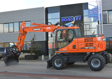 De nieuwe Doosan DX140W-3 van V.O.F. Bultman in 't Harde is uitgerust met een lepelsteel van 210 mm, in plaats van de standaard 250 mm lepelsteel. Op deze manier kan een NOX draaikantelstuk gebruikt worden, terwijl het bereik van de machine gelijk blijft.