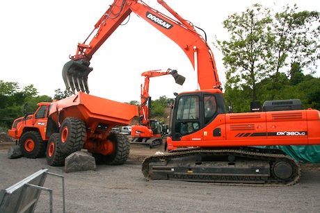 <a href="http://www.doosanequipment.eu" target="_blank"><strong>Doosan Construction Equipment</strong></a><strong> toont op de </strong><a href="http://www.steinexpo.eu" target="_blank"><strong>Steinexpo 2014</strong></a> (3-6 september) de nieuwe DA40 ADT knikdumper. De Doosan komt daar in actie samen met andere machines, zoals de <p><strong><span style="font-size: 12px;">DX380NLC-3 rupsgraafmachine met Montabert breker, de DX530NLC-3 52-tons graafmachine, de DL420-3 wiellader en de DA30 knikdumper.</span></strong></p>