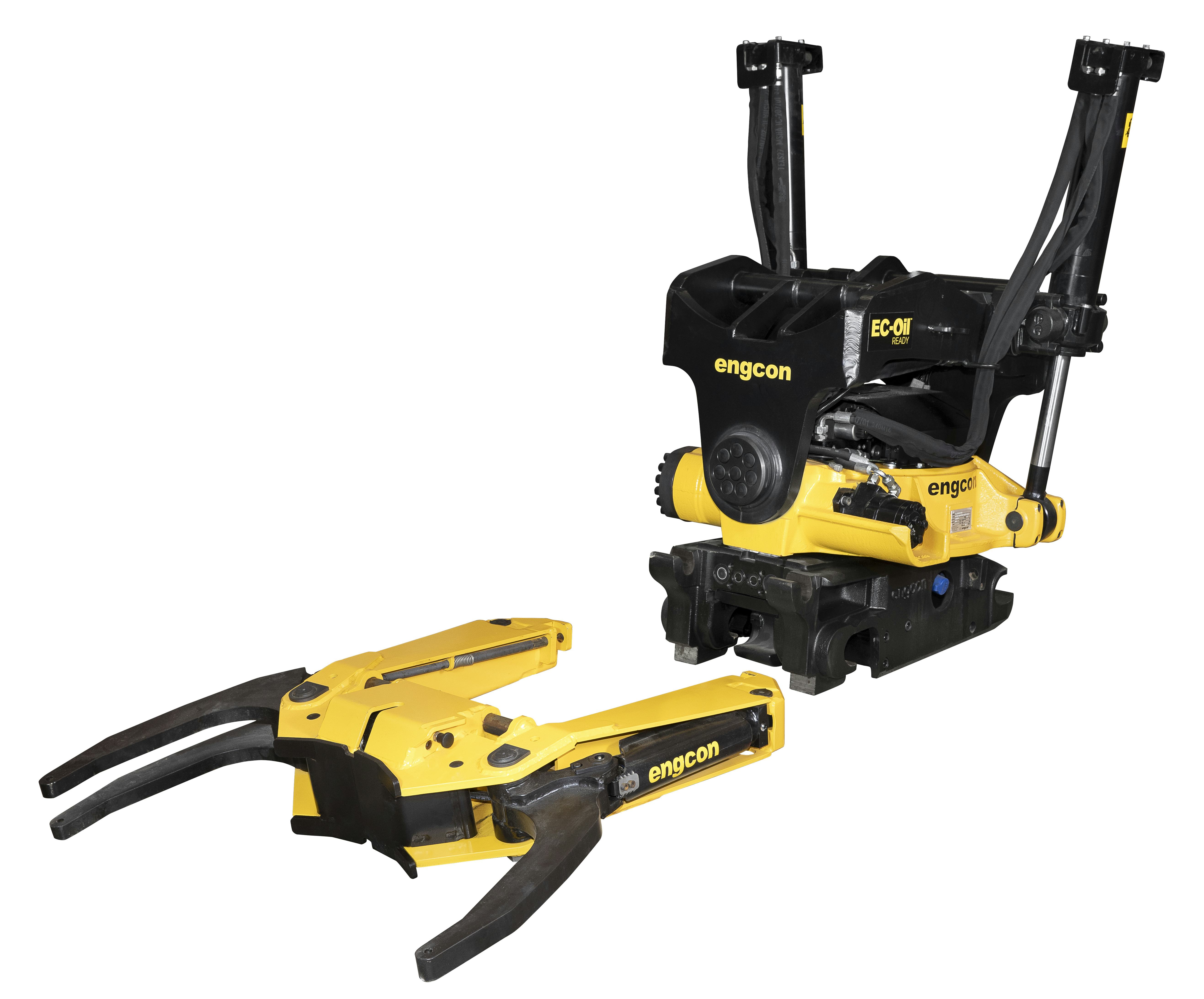 Engcon begint met de serieproductie van een grijper voor zijn grootste draaikantelstuk, de EC233. Vanaf juli 2019 is deze GRD70 volgens de fabrikant leverbaar in Nederland.