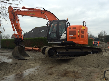 GSned in Terneuzen nam de tweede nieuywe machine van Hitachi in ontvangst via Pladdet. Na de vorig jaar aangeschafte ZX250LC-5 viel de keuze nu op de ZX225USLC-5 binnendraaier. De 25-tons machine werd vroeg in de morgen afgeleverd in een natuurgebied op Flakkee.