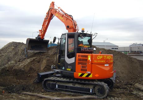 Door Gebr. Pladdet BV uit Biervliet werd onlangs een nieuwe Hitachi ZX85USBCL-3 midi-graafmachine afgeleverd bij Loon- en verhuurbedrijf Op 't Hof in Oudelande.