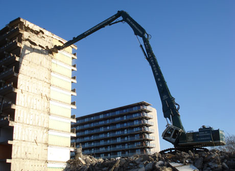 <strong>Net voor de jaarwisseling is een Hitachi ZX 870 LCH-3 met sloopgiek afgeleverd aan firma Van Groningen op een sloopproject in Apeldoorn.</strong>