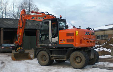 Hitachi vertegenwoordiger Jeroen Hornman heeft een nieuwe mobiele graafmachine afgeleverd bij Luc Leers te Heerlen.