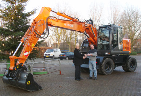 <strong>Op 2 januari vond de overhandiging plaats van een nieuwe mobiele Hitachi ZX 140 W-3 graafmachine uit de Zaxis serie, aangekocht door Machineverhuur Dennis Kraay.</strong>