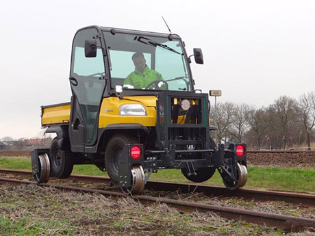 <p style="text-align: center;"><small>Keurmeester Patric Balder van HHC/DRS keurt de Kubota RTV op industriespoor in Kampen.</small></p><a target="_blank" href="http://www.koerts-techniek.nl">Gebr. Koerts Techniek</a> in Dronten heeft voor <a target="_blank" href="http://www.railcare.nl">RailCare</a><p><strong> in Noordwijkerhout een Kubota RTV (Rail Track Vehicle) aangepast voor transport op het spoor. De machine voldoet aan de laatst gestelde eisen volgens TVCT certificatie.</strong></p>