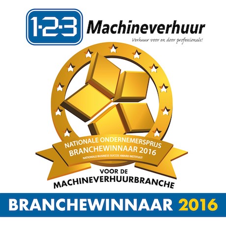 1-2-3 Machineverhuur BV is door het Nationale Business Succes Award Instituut uitgeroepen tot winnaar 2016 in de categorie Machineverhuur.