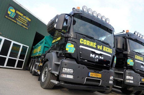 Corné van den Berg uit Maasland, gespecialiseerd in grondwerk, heeft zijn tweede MAN TGS 36.440 8x4-4 in ontvangst genomen. Deze kipper maakt deel uit van het specialistische materieel dat Van den Berg inzet voor grondverzetwerk. 'Betrouwbaar materieel is voor ons van groot belang. Bedrijven en overheid moeten op ons kunnen rekenen. Daarom hebben wij voor de derde maal voor MAN gekozen.'