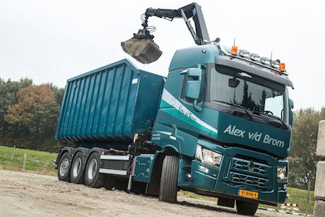 Voor het transport van containers, bestratings- en grondwerkzaamheden en de aanleg en onderhoud van paardenbakken heeft Alex van den Brom in Hoevelaken een Renault Trucks C aangeschaft. De bakwagen in 8x4 tridem configuratie met 520 pk is opgebouwd met een autolaadkraan inclusief knijper en een kabelsysteem.