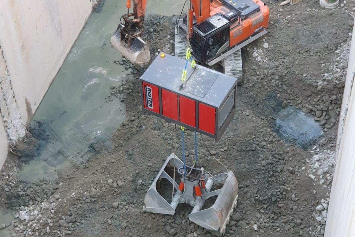 Beton van 1,40 meter dik wegknippen op een hoogte van 120 meter. Laarakkers Democom doet dat in het Duitse Boxberg met een powerpack aan een draadkraan. Het powerpack hangt aan een Demarec DCC75 betonschaar hing, die werd geleverd door Rigter Rentall & Repair.