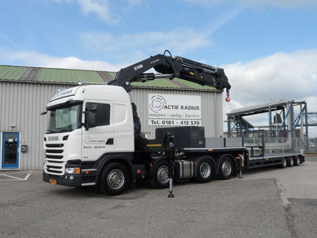 Scania G 450 vierasser met 85 ton/meter kraan voor Actie Radius