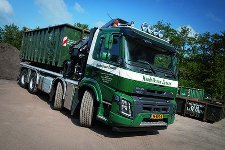 De nieuwe <a href="http://www.volvotrucks.nl" target="_blank">Volvo</a><p><strong> FMX 460 8x4 Tridem van Gebr. Schouls b.v. uit Leiden is voorzien van diverse opties, waaronder Volvo Dynamic Steering (VDS) en een Work Remote: een draadloze afstandsbediening waarmee het laden kan worden vereenvoudigd.</strong></p>