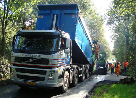 Voor het transport van asfalt heeft G. van de Kamp uit Stroe onlangs twee Volvo's FM 8x4 aangeschaft.