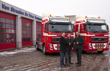 <h3>Schoon, schoner, schoonst</h3><strong>Van Straalen & De Vries Transport, met kantoren in Zwaagdijk en Spierdijk, heeft onlangs twee nieuwe Volvo FH 420 pk Euro 5-trucks met LPG toevoeging van E-mission Low in gebruik genomen. Hierdoor profiteert het bedrijf van de combinatie diesel/LPG als brandstof. De trucks zijn geleverd en omgebouwd door Volvo Truck dealer Van der Linden van Sprankhuizen Bedrijfswagens BV.</strong>