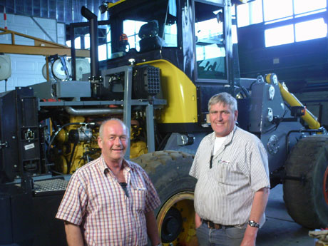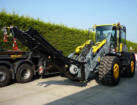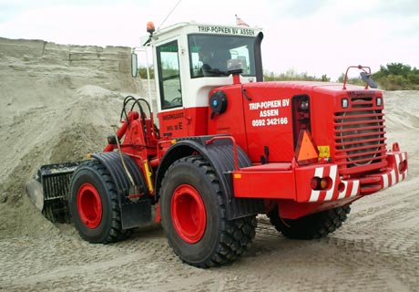 Op mijn gemak bekijk ik de verrichtingen van machinist Hans Oude Nijhuis. Ik bekijk hoe hij met zijn nieuwe Werklust WG45E zand schept in een gereedstaande vrachtauto. Tegelijk houdt hij de toegangsweg van de zandput in het oog, die ligt net naast de A1 richting Osnabrück, over de grens eerste afslag Gildehaus-Gronau.