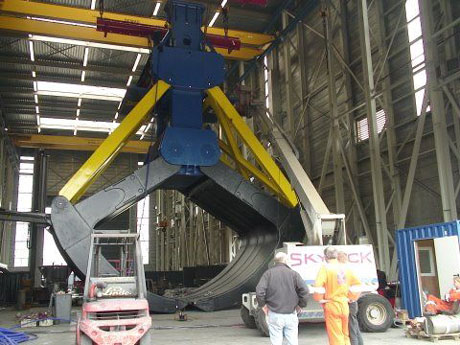 Breman Machinery in Genemuiden heeft de afgelopen maanden hard gewerkt aan de constructie van een gigantische - 240 ton zware - wrakkengrijper.