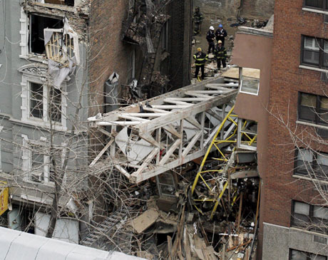 Op een bouwterrein in Manhattan is zaterdagavond een grote hijskraan omgevallen en op een gebouw terechtgekomen. Het getroffen gebouw is goeddeels verwoest. Volgens de Amerikaanse omroep ABC zijn er zeker vier doden gevallen. Er zouden nog mensen vastzitten.