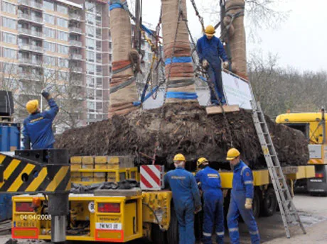 In Sliedrecht werden deze week drie metasequoia's uitgegraven en met één kluit verplaatst op een grote wagen. Er was een hijskraan van 400 ton voor nodig om de bomen los te trekken. De metasequoia's, die aanvankelijk gekapt zouden worden om plaats te maken voor nieuwbouw, zijn verplaatst naar het nieuwe Parkzicht in Sliedrecht.