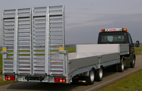 Voor het laden van machines met verschillende spoorbreedtes heeft Veldhuizen Wagenbouw in Groenekan speciale rijgoten ontwikkeld.