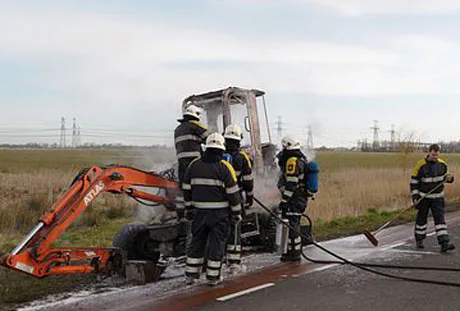 <strong>Aan het Hoendiep nabij De Poffert is donderdagmorgen omstreeks 9.20 uur een mobiele graafmachine spontaan in brand gevlogen</strong>.