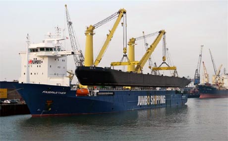 <p><strong>Met het aan boord hijsen van de casco's van twee binnenvaarttankers in Nantong (China) loste de Fairpartner, één van Jumbo Shipping's veertien zware ladingschepen, vorige week haar langste lading ooit.</strong></p>