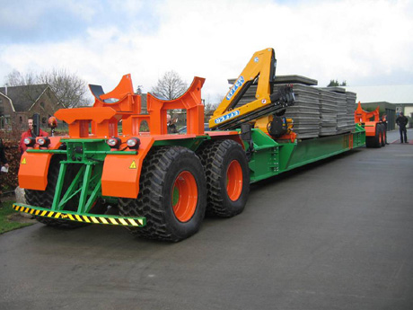 <a href="http://www.bam.nl">BAM International</a> heeft in samenwerking met machinebouwer <a href="http://www.vredo.nl">Vredo</a><p><strong> uit Dodewaard een bijzonder transportvoertuig ontwikkeld voor een steigerproject op Papoea-Nieuw-Guinea. Het zelfrijdend voertuig met een lengte van 24 meter en een laadvermogen van zestig ton wordt ingezet voor de aanvoer van betonnen balken, rijdekelementen en vijftig meter lange stalen buispalen. Het diesel-hydraulische aangedreven voertuig wordt - na demontage - in twee containers verscheept naar de bouwlocatie.</strong></p>