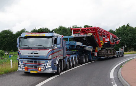 <strong>'Standaard' is zelden van toepassing bij Brouwer Zwaar & Speciaal Transport in Nieuwegein. Iedere nieuwe combinatie is tot in het kleinste detail aangepast voor het vervoer van zware machines. Onlangs werd een nieuwe Nooteboom 5-assige Euro-132-25(P) met een 2-assige Jeepdolly in gebruik genomen. Voor de dieplader staat een eveneens nieuwe Volvo FM 540 10x4/6 zwaar transport trekker. De combinatie met twaalf assen en een laadvermogen van 95 ton is geschikt om ook op de meest krappe locaties gemakkelijk te manoeuvreren. </strong>