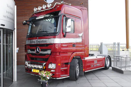 <strong>In het bijzijn van bedrijfswagendealer Sturm Auto, Mercedes-Benz Nederland en huisleasemaatschappij Mercedes-Benz CharterWay kreeg algemeen directeur Jaap Lucas de sleutel overhandigd uit handen van zijn zoons. Deze nieuwe generatie Actros van het type 1841 is voor deze gelegenheid voorzien van een prachtige special paint. </strong>