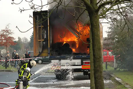 Een gestolen oplegger met vaten met onbekende chemische stoffen heeft zondag uren gebrand op een bedrijventerrein in Doetinchem. De chauffeur was gevlucht en vrachtbrieven ontbraken.