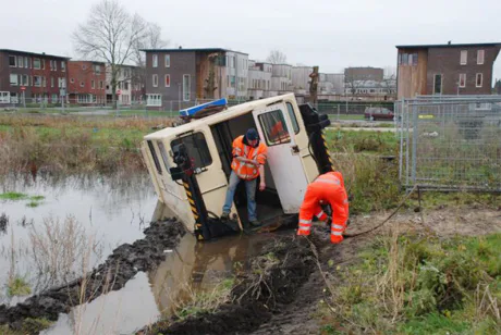 Rupsvoertuig zakt weg in drijfzand