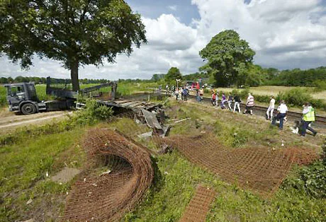 Bij een ongeval tussen een vrachtwagencombinatie en een trein op een onbewaakte spoorwegovergang in Meddo (gemeente Winterswijk) zijn dinsdagochtend de machinist en een vrouwelijke passagier gewond geraakt