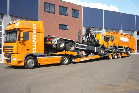 In samenwerking met CleanMat heeft TSR een speciale truck transporter ontwikkeld voor het transport van onder meer huisvuilwagens.