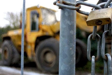 Het tempo is razendsnel. Een stel vrachtwagens is net voorbij. Nu volgen de bulldozers en een serie graafmachines. Het materieel rolt af en aan over een soort podium dat voor het publiek is neergezet. Bijna 2000 stuks. Van vorkheftrucks tot aan tientallen meters hoge hijskranen. De Spaanse bouw is in de uitverkoop.