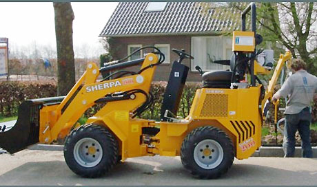 Onlangs heeft Hanenberg Materieel de vijfde Sherpa mini-loader geleverd aan Hurkens Bestratingen, te Rosmalen. De Sherpa 200 is uitgerust met een bandensteller die achterop deze knik-loader is gemonteerd.