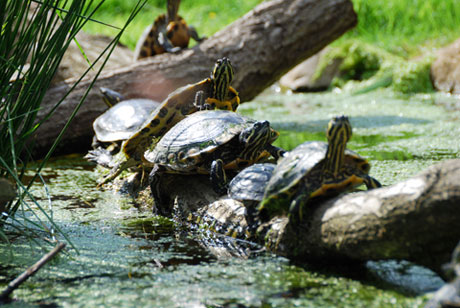<strong>Illegaal uitgezette waterschildpadden bezorgen de gemeente Dirksland en Waterschap Hollandse Delta hoofdbrekens. De dieren houden momenteel een winterslaap en hebben zich ingegraven in de bodem van de Kerkgracht. De gracht moet echter worden uitgebaggerd.</strong>